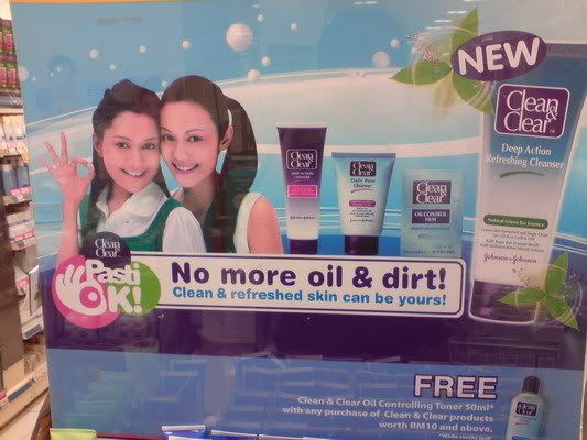 Masuk-masuk jer, ternampak promotion Clean & Clear yang baru tu. Eh, macam pernah nampak print ad tu. Hamboi, Intan! Bukan setakat masuk majalah, u dah masuk Guardian dah! Terus jer I snap then MMS her. Hahahaha...